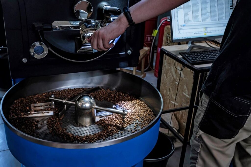Bags of coffee roasted